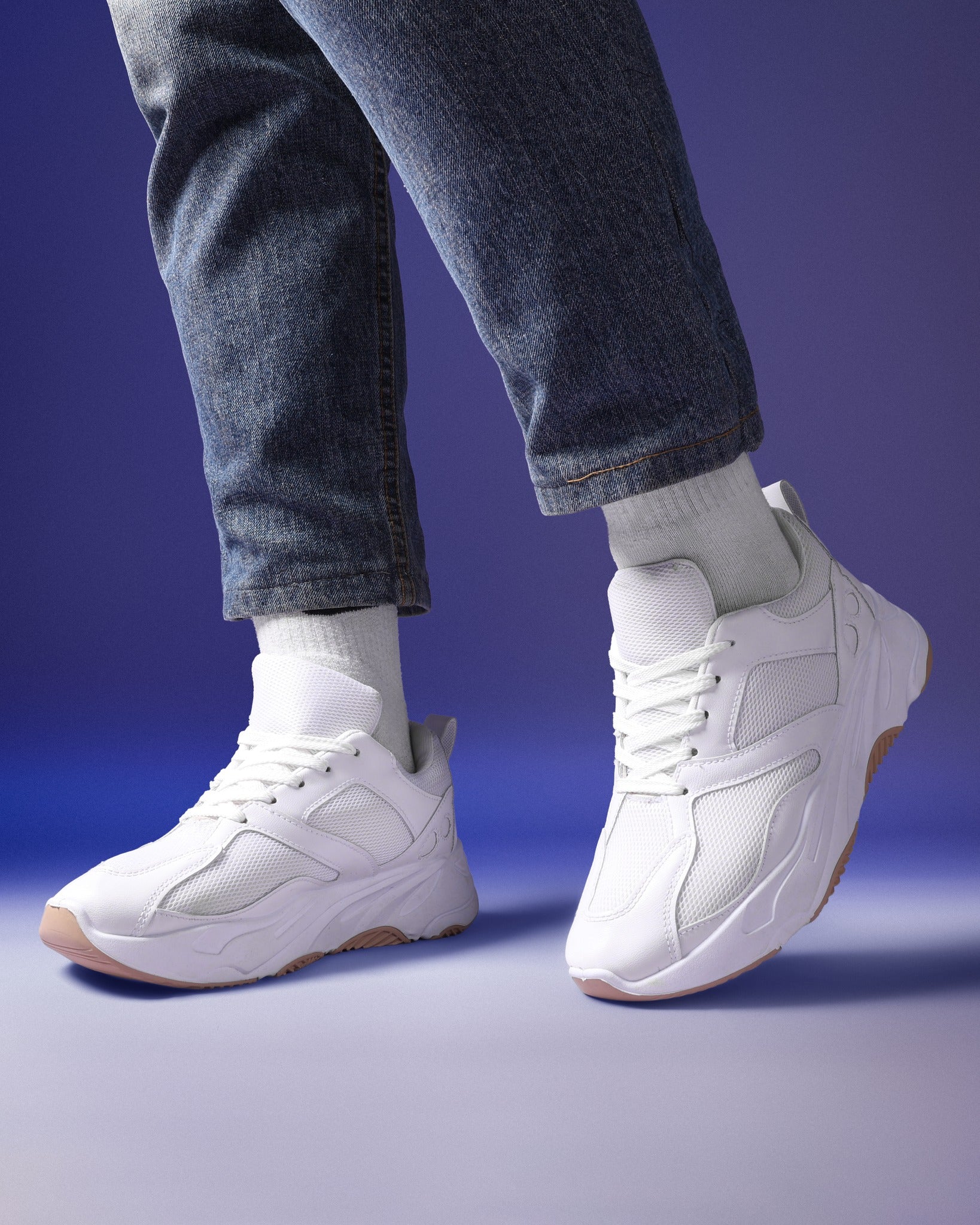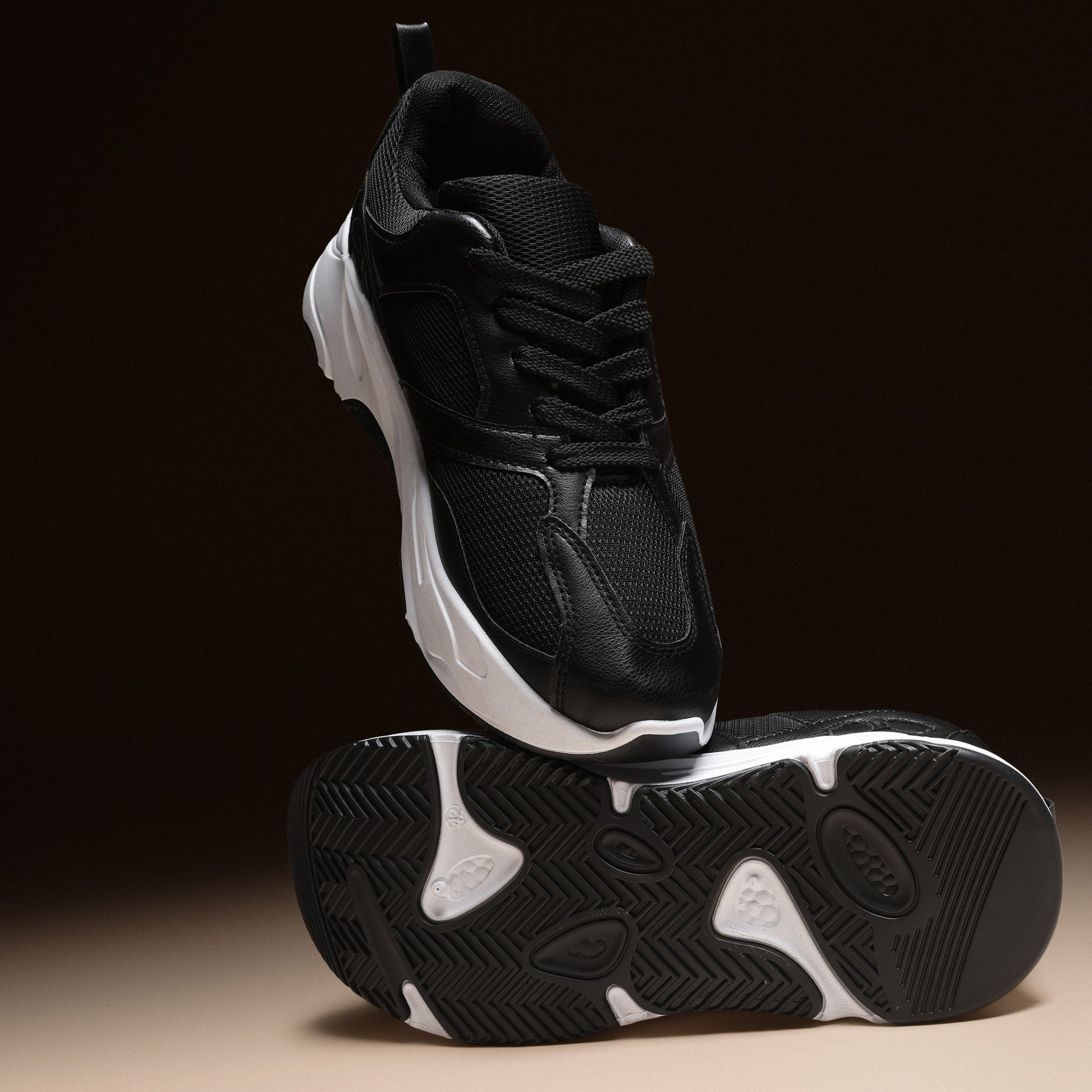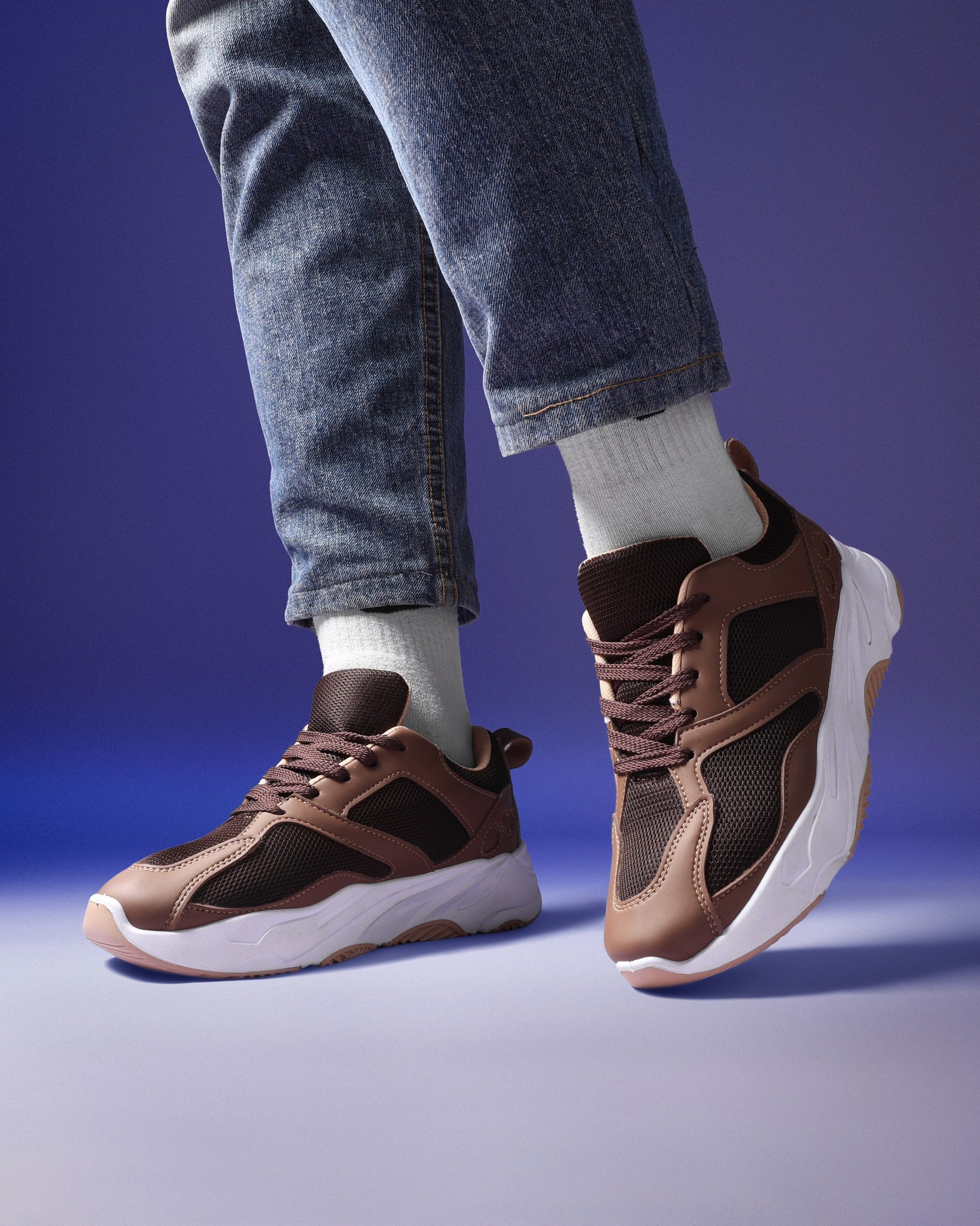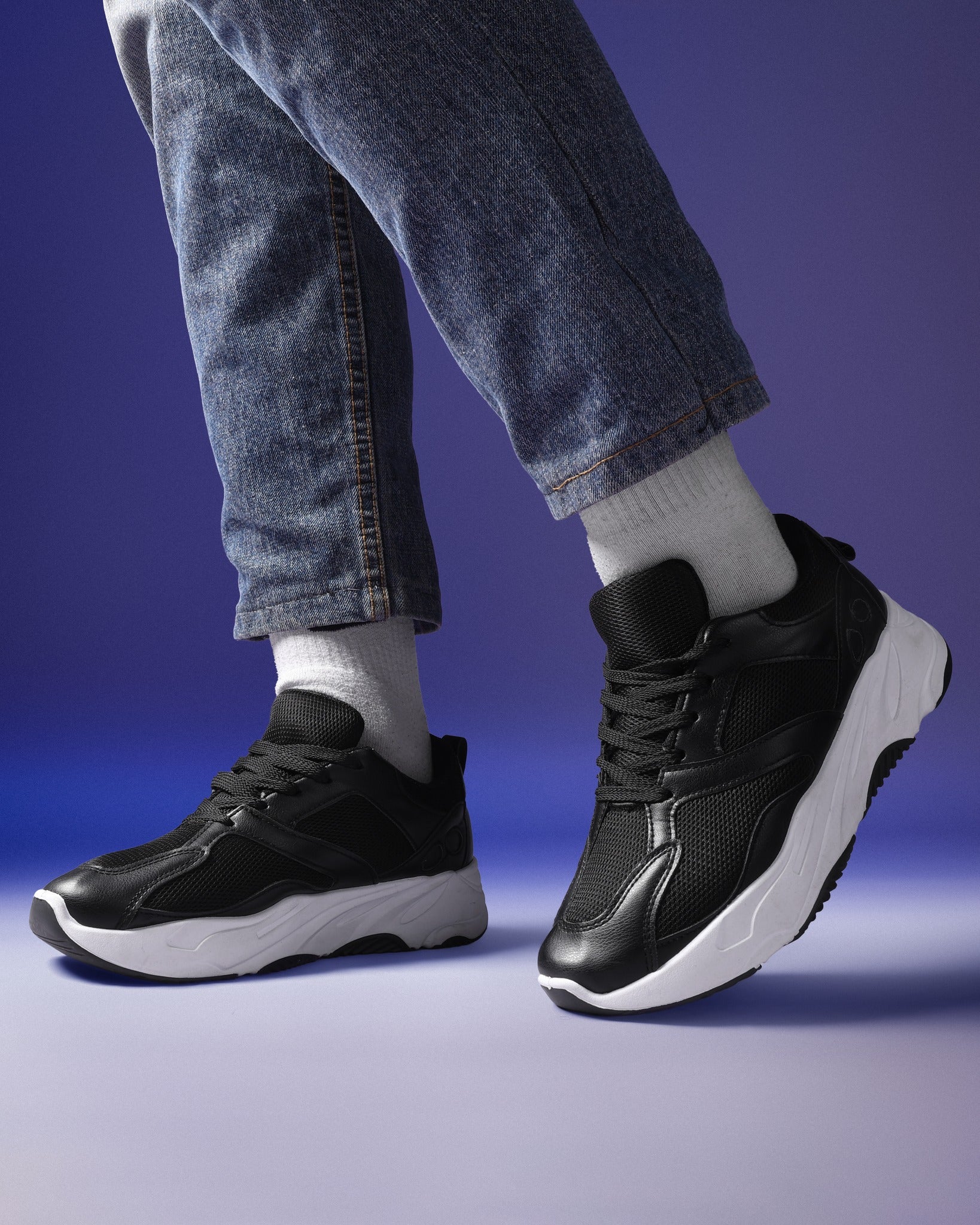 حذاء رياضي كاجوال بتصميم شانكي رانر، مصنوع من خامة شبك لتهوية أفضل مع طبقات خارجية متينة لزيادة الثبات. نعل سميك يوفر راحة أعلى للاستخدام اليومي والتنقل.