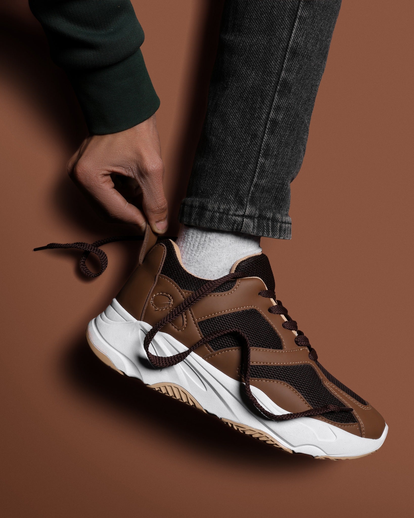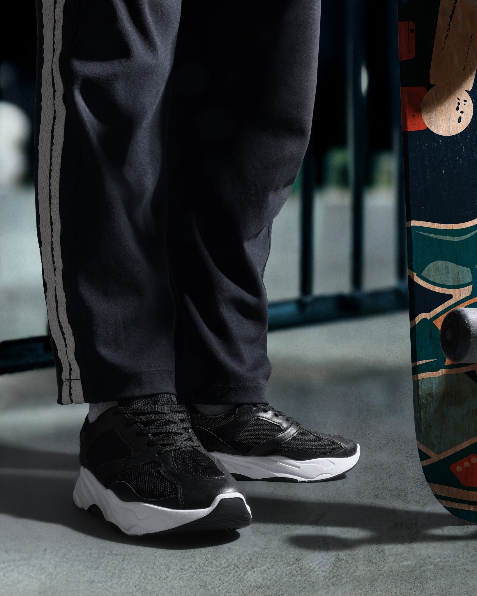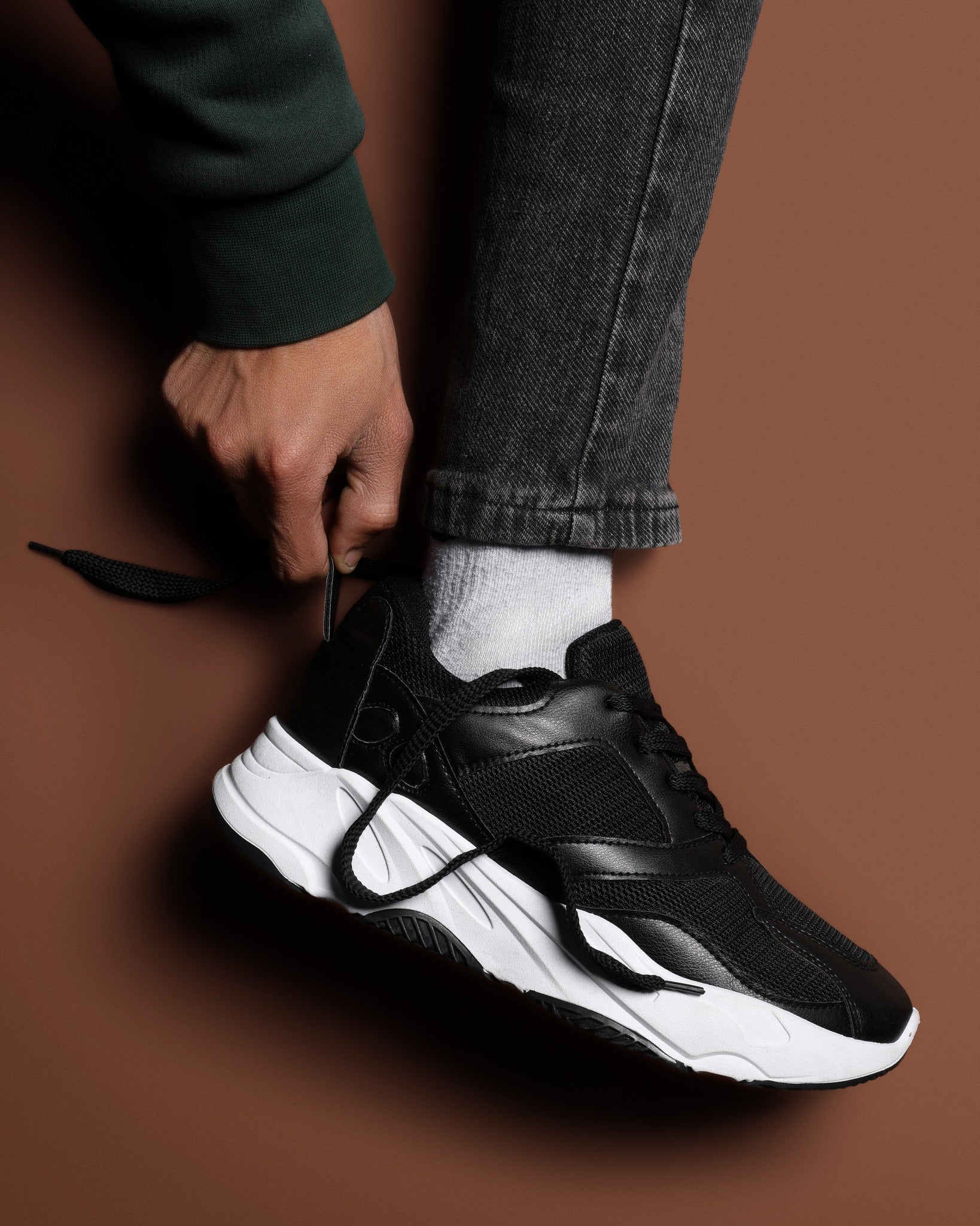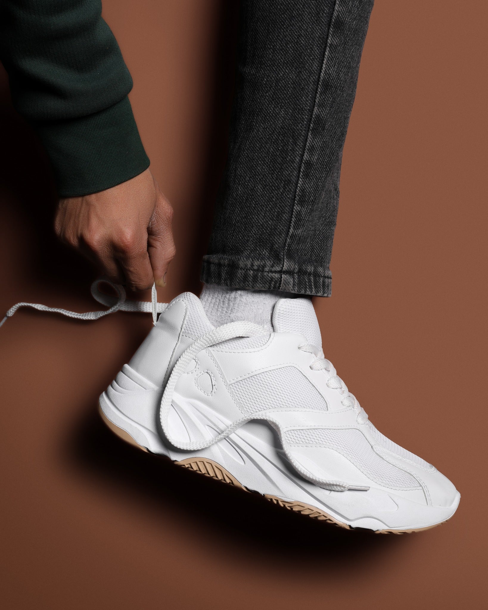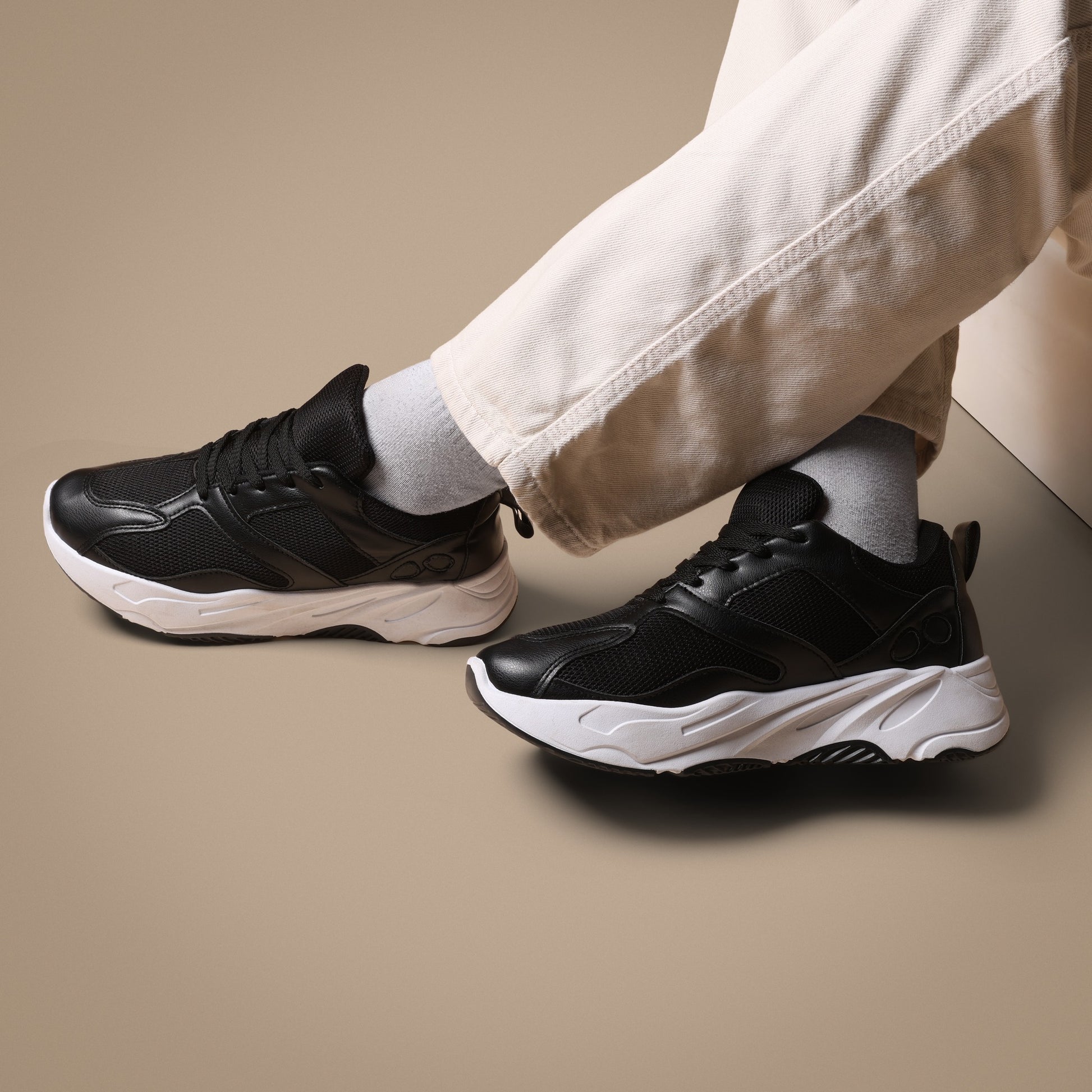حذاء رياضي كاجوال بتصميم شانكي رانر، مصنوع من خامة شبك لتهوية أفضل مع طبقات خارجية متينة لزيادة الثبات. نعل سميك يوفر راحة أعلى للاستخدام اليومي والتنقل.